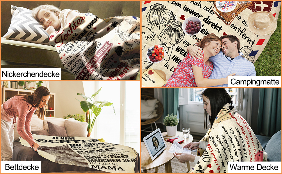 Eracii Personalised Letter Blanket An Meine Tochter Decke Super Soft Flannel Blanket Air Mail Letter Deck Suitable For Summer Sofa Travel Gift For Father S Day German Language Version Amazon De Home